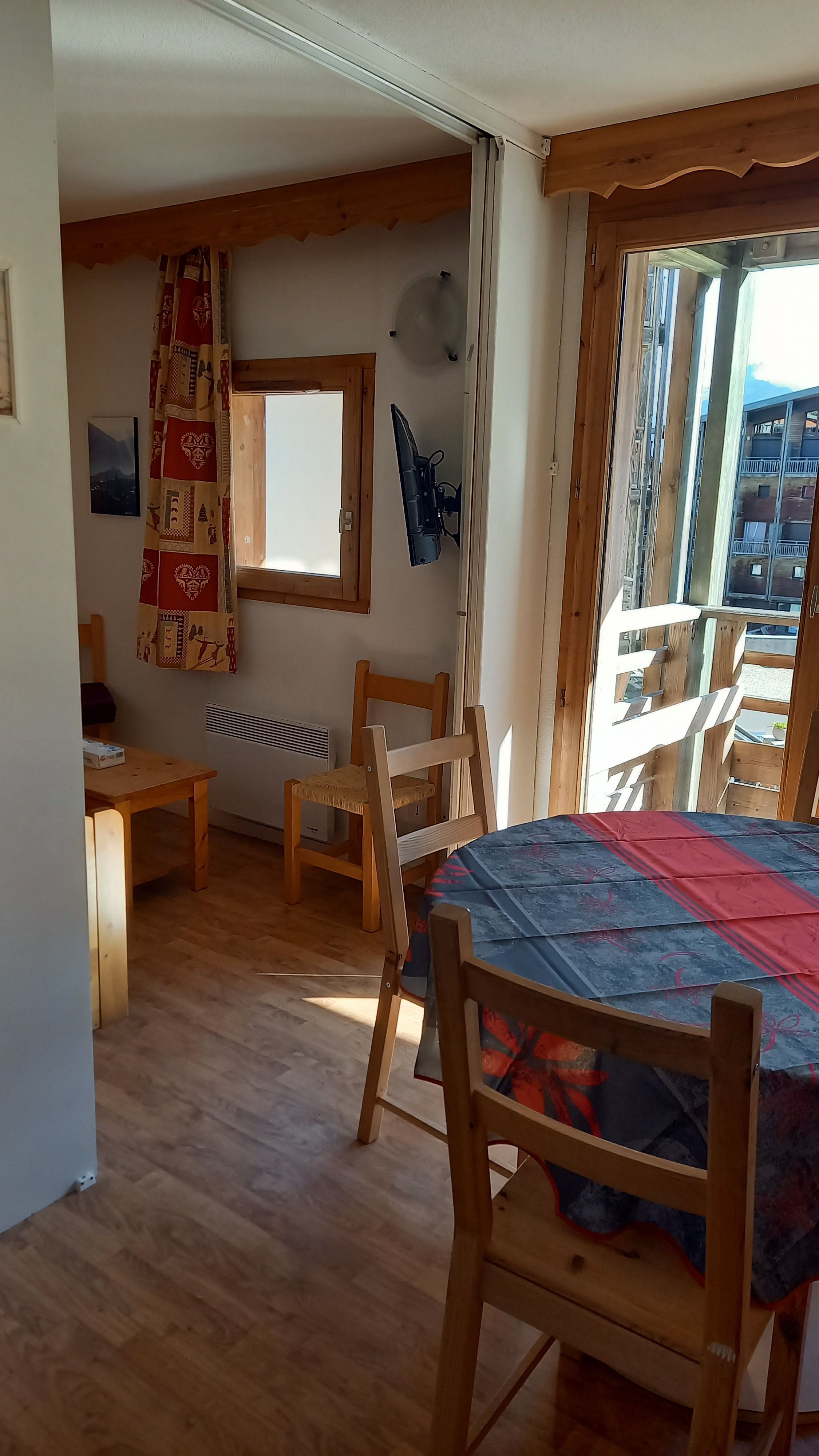 Appartement T2 très lumineux, orienté est, avec vue sur les pistes, situé en centre de la station à proximité des pistes et commerces. Accès direct par ascenseur au parking sous-terrain gratuit.