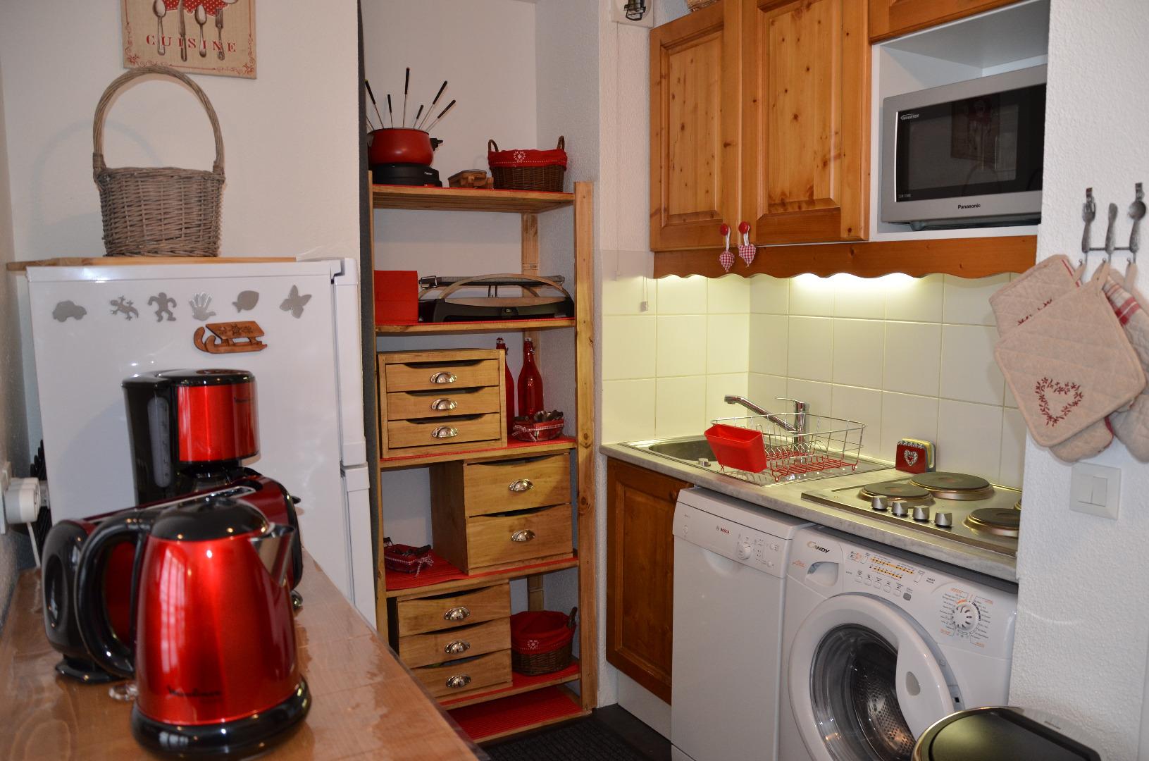 - une kitchenette avec plaques, frigo/congélateur, lave-vaisselle, four, micro-onde, machine à laver-séchante