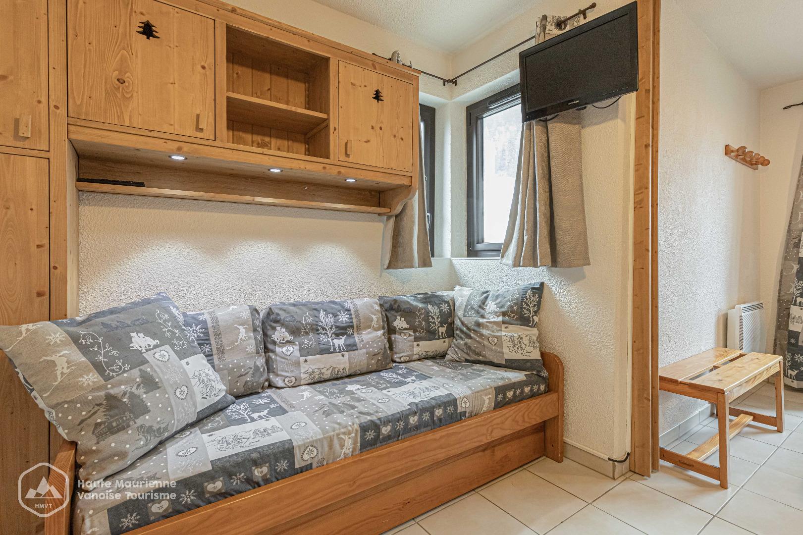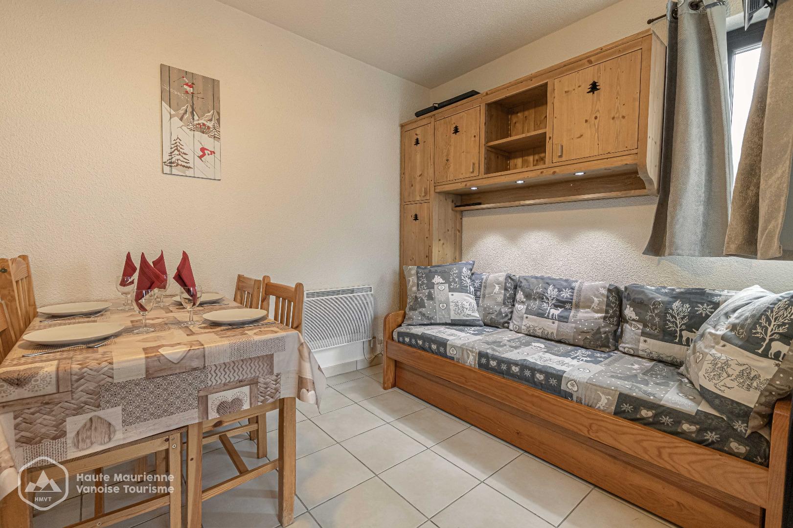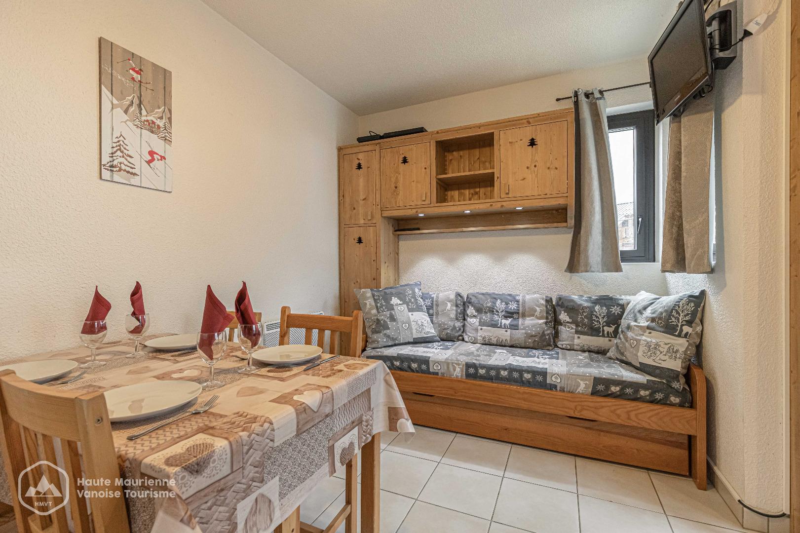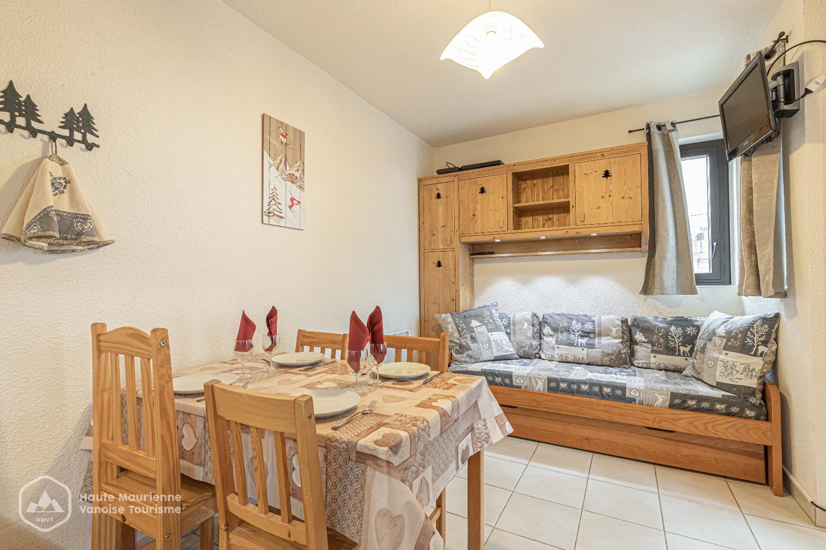 appartement au pied des pistes, dans la résidence les Airelles, avec balcon sud donnant sur les pistes et remontées mécaniques.Premier télésiège à 70 m.