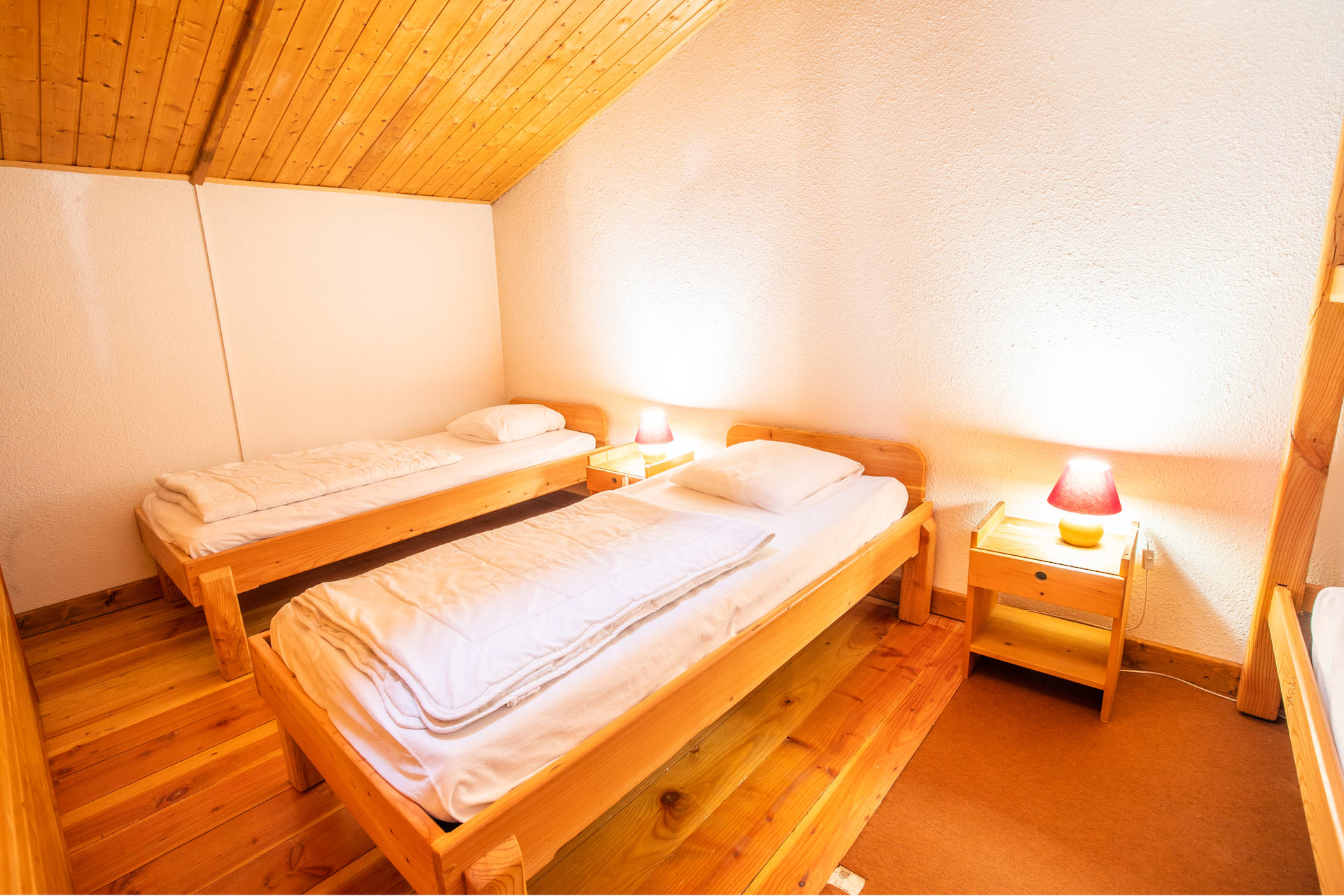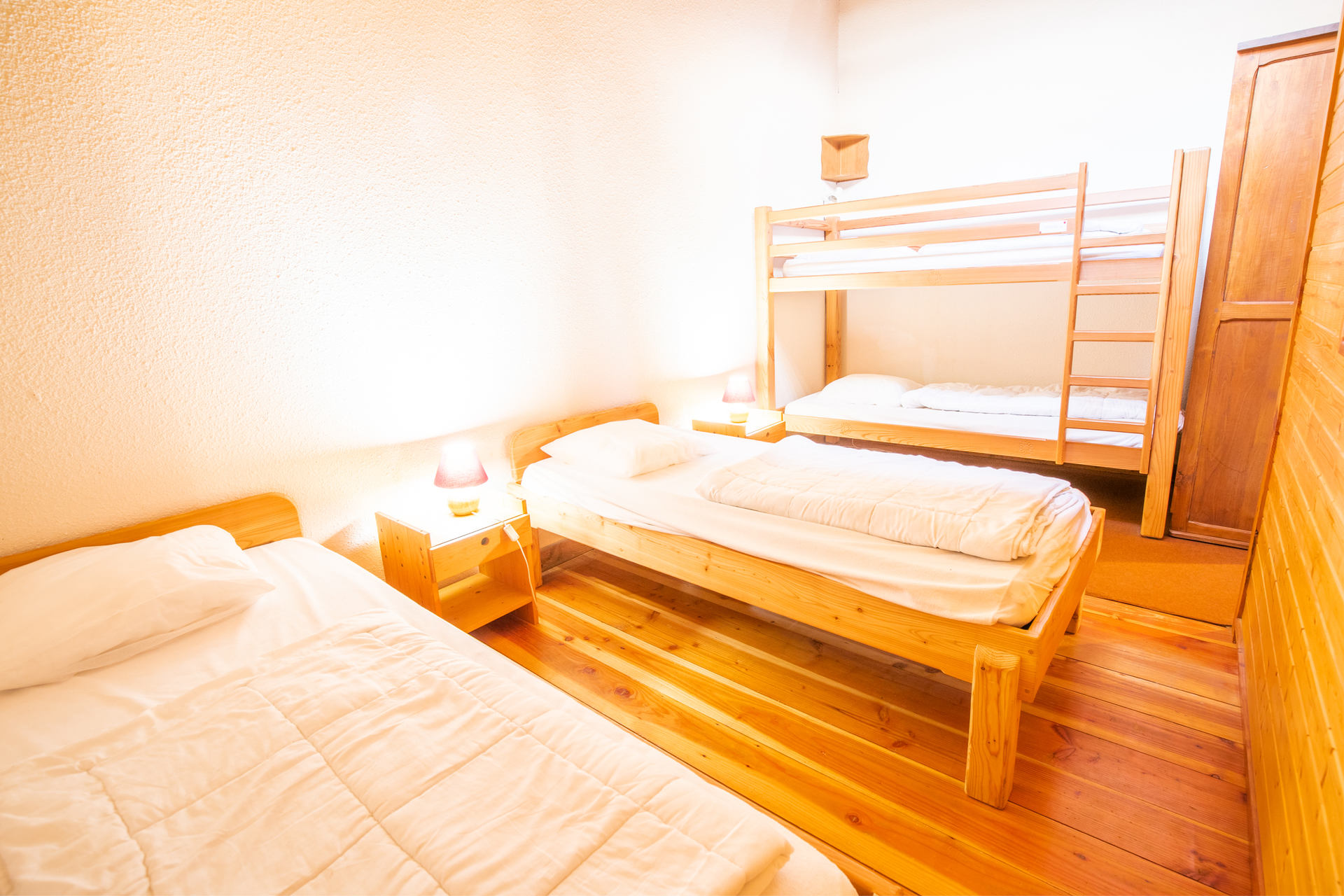 Mezzanine : deux lits simples et un lit superposé