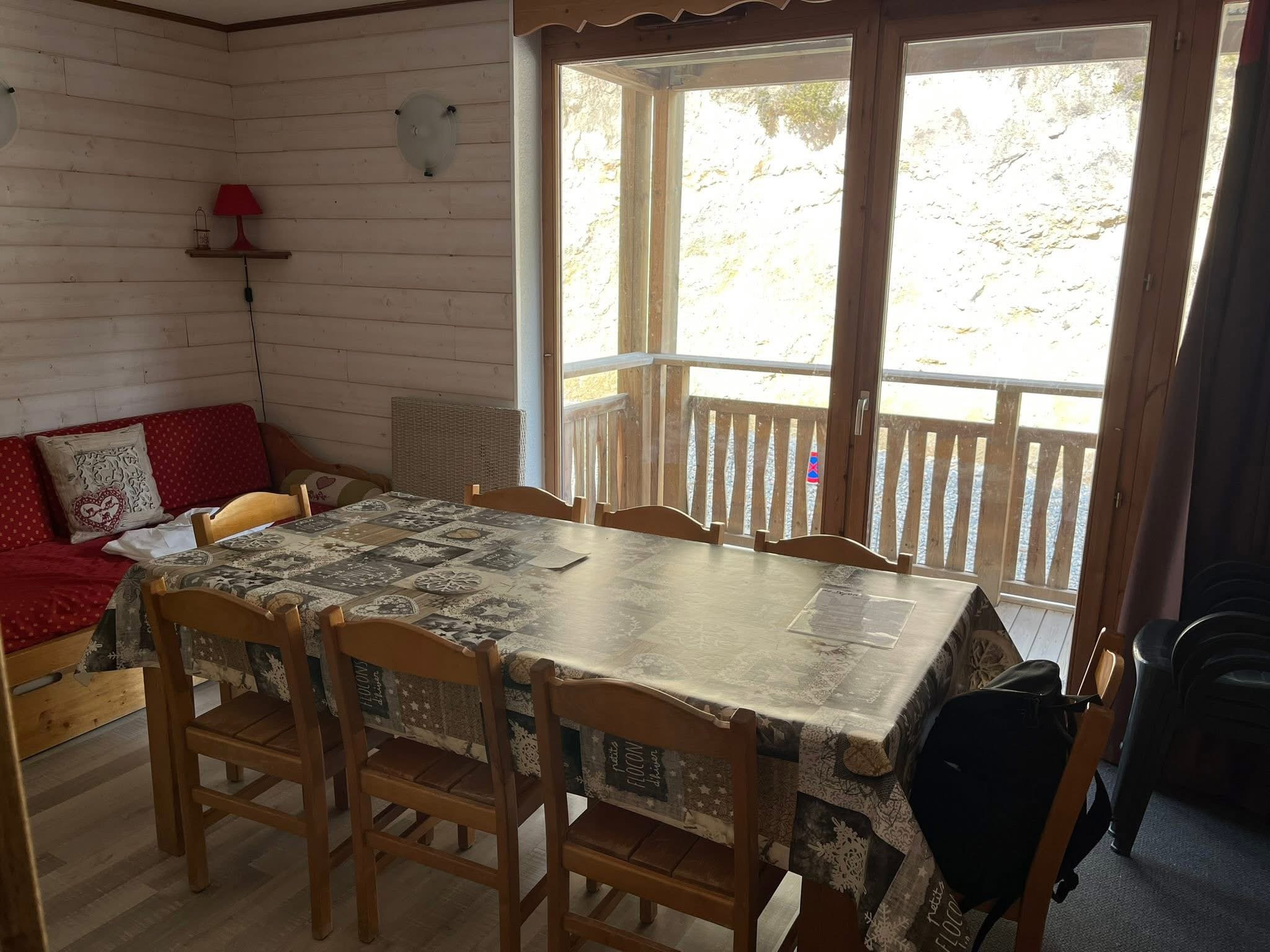 - Un salon (canapé lit gigogne 2 couchages) / salle à manger avec balcon.