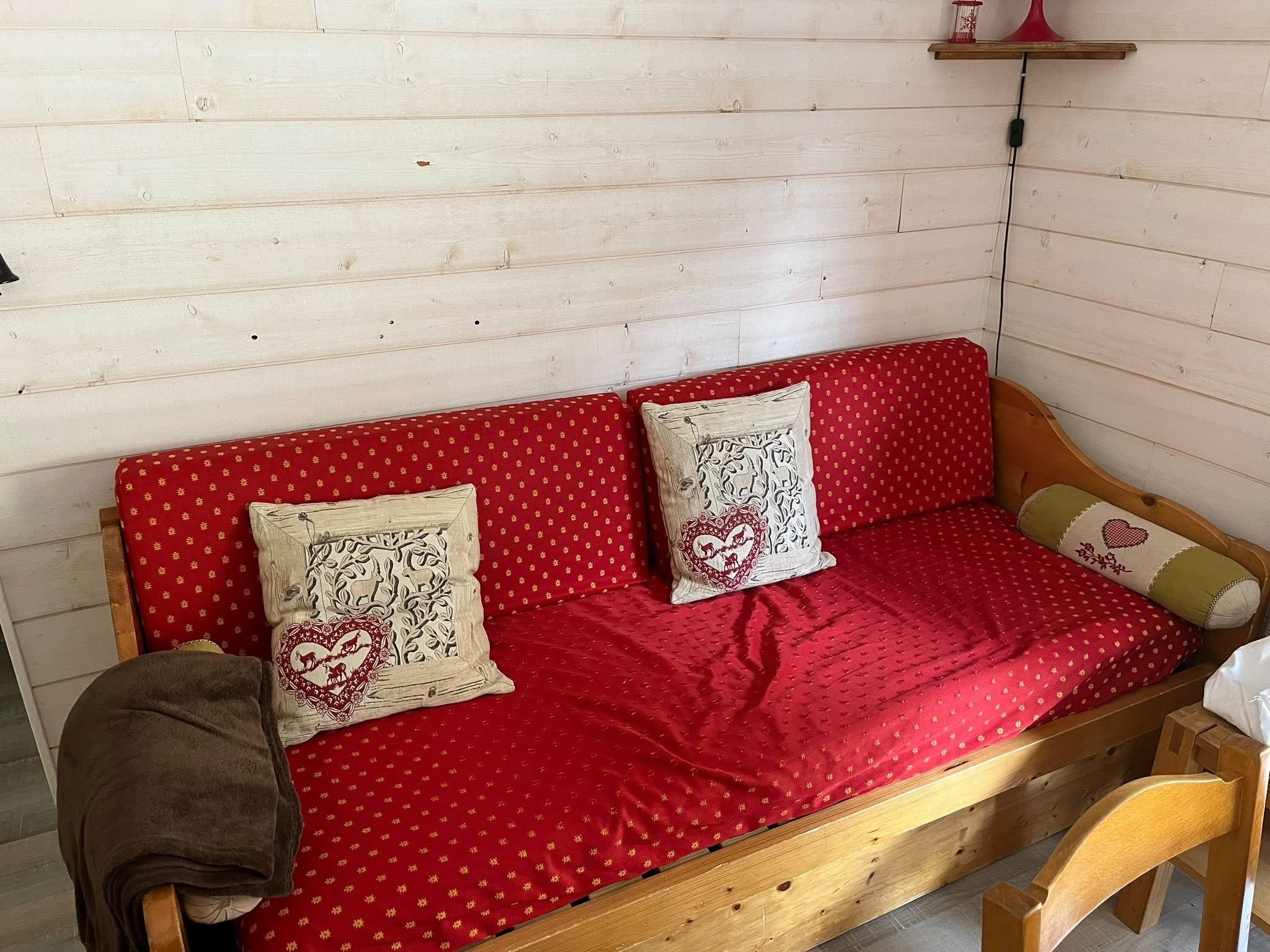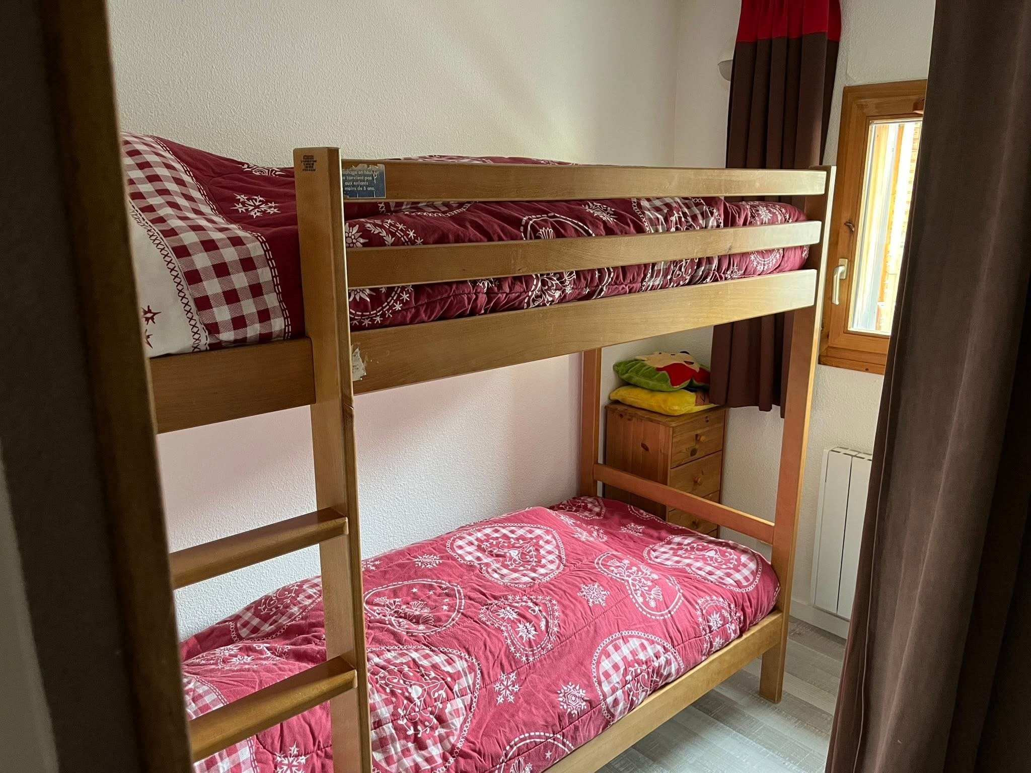 - Un coin montagne (au bout de l’appartement à proximité des chambres) avec deux lits superposés 80x190, une fenêtre.