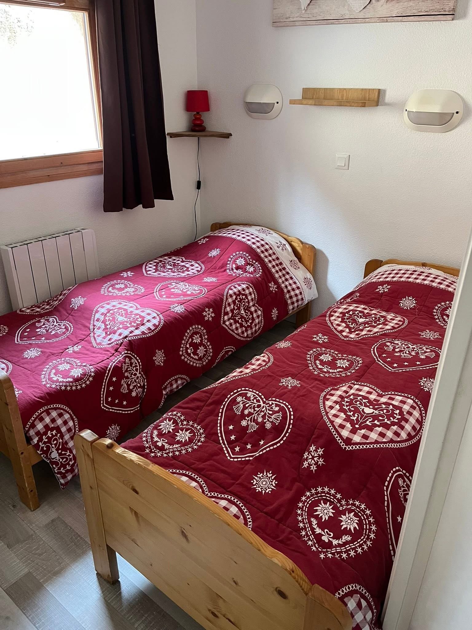 - Une chambre avec deux lits simples 80x190, un placard, une fenêtre.