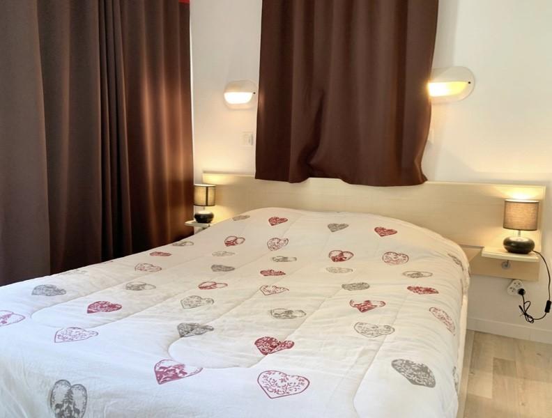 - Une chambre avec un lit double 140x190, un placard, un balcon d’angle.
